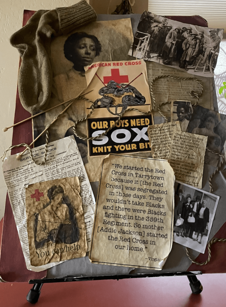 During WWI, the Red Cross started a massive campaign soliciting the help of all American citizens to knit for the American soldiers fighting abroad. It came to light that the Black soldiers were not receiving the knitted donations from the many church, school and social groups across the nation. So, Addie began her own chapter of the Red Cross right in her very own living room to ensure that the 369th Regiment, the “Harlem Hellfighters,” would get their handcrafted gifts from the Black women in her community.